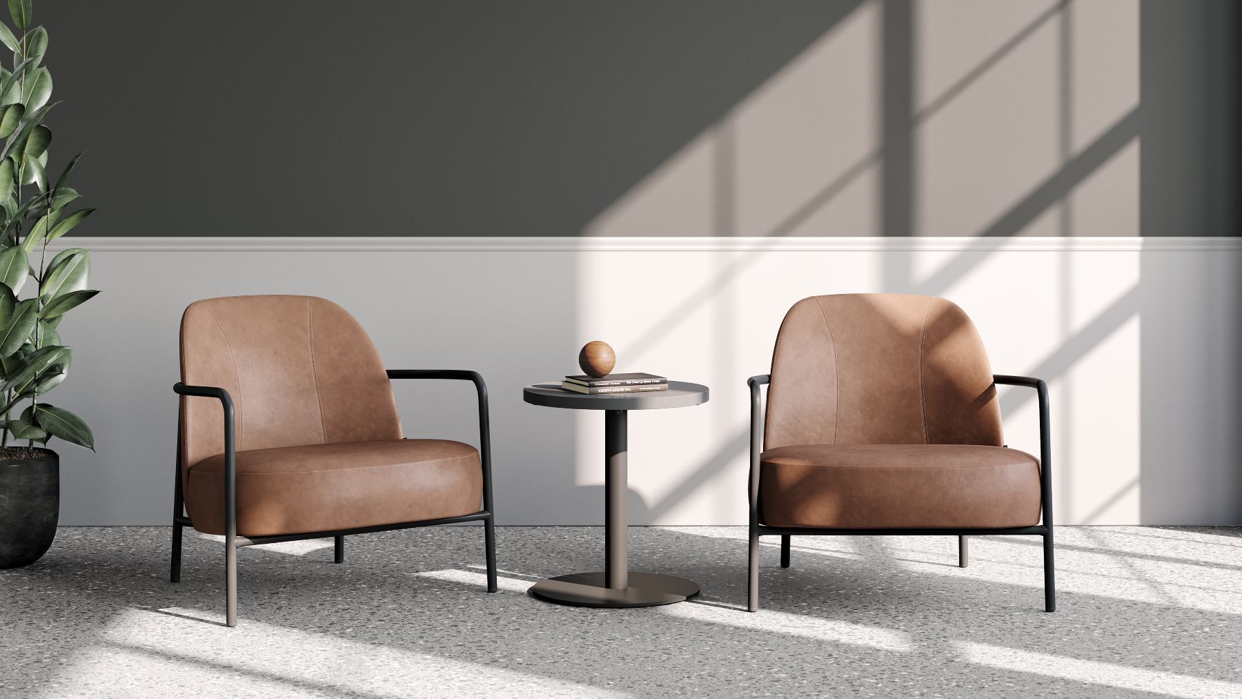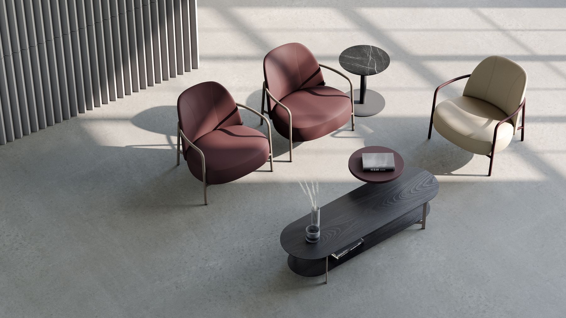 Ferno lounge marki B&T Design, zaprojektowany przez Alpa Nuhoğlu, to fotel łączący nowoczesną formę z komfortem użytkowania. Jego szerokie, miękkie siedzisko i subtelnie zaokrąglone oparcie zapewniają wygodę, a smukła, metalowa rama nadaje fotelowi lekkości i elegancji.