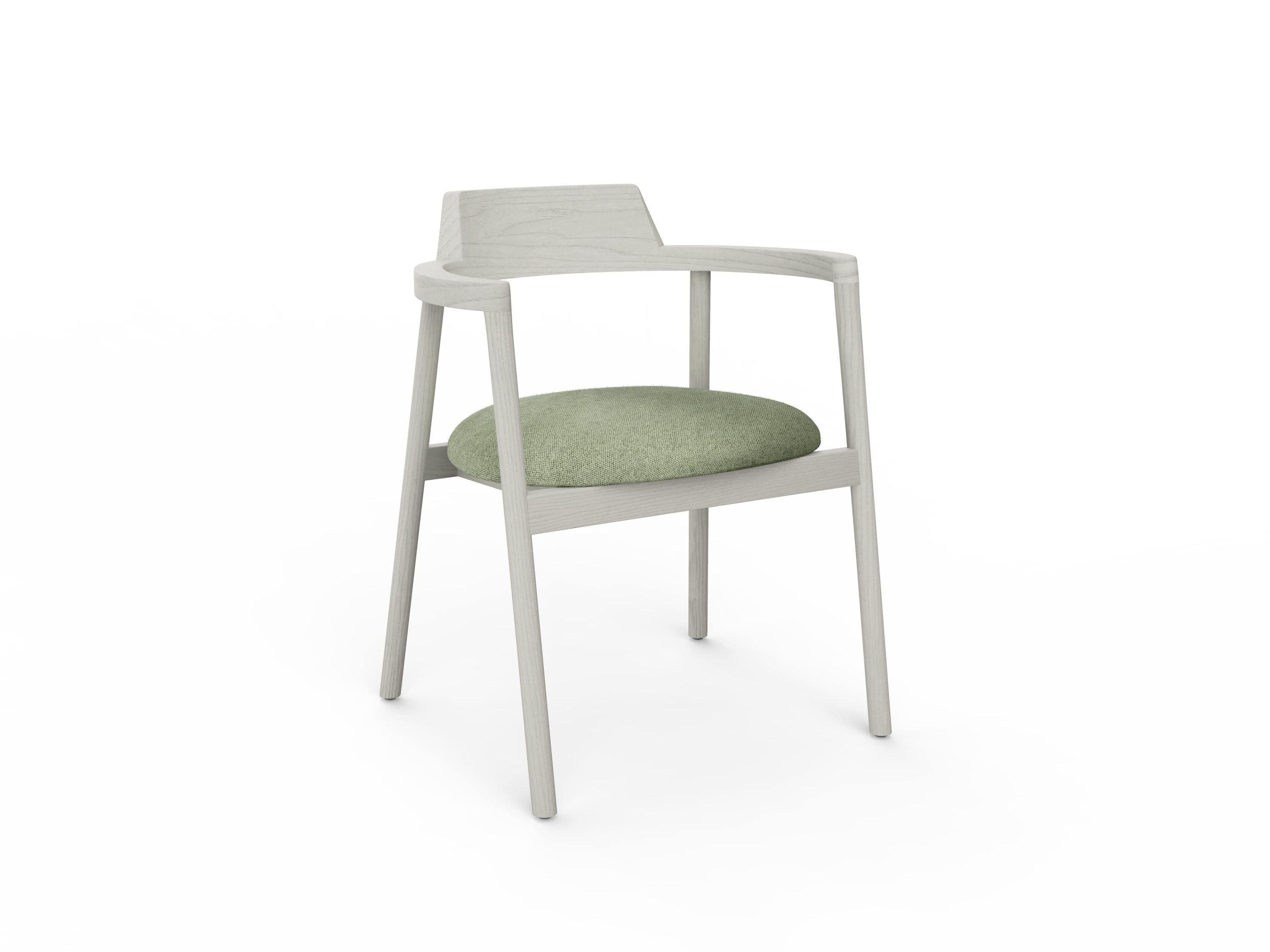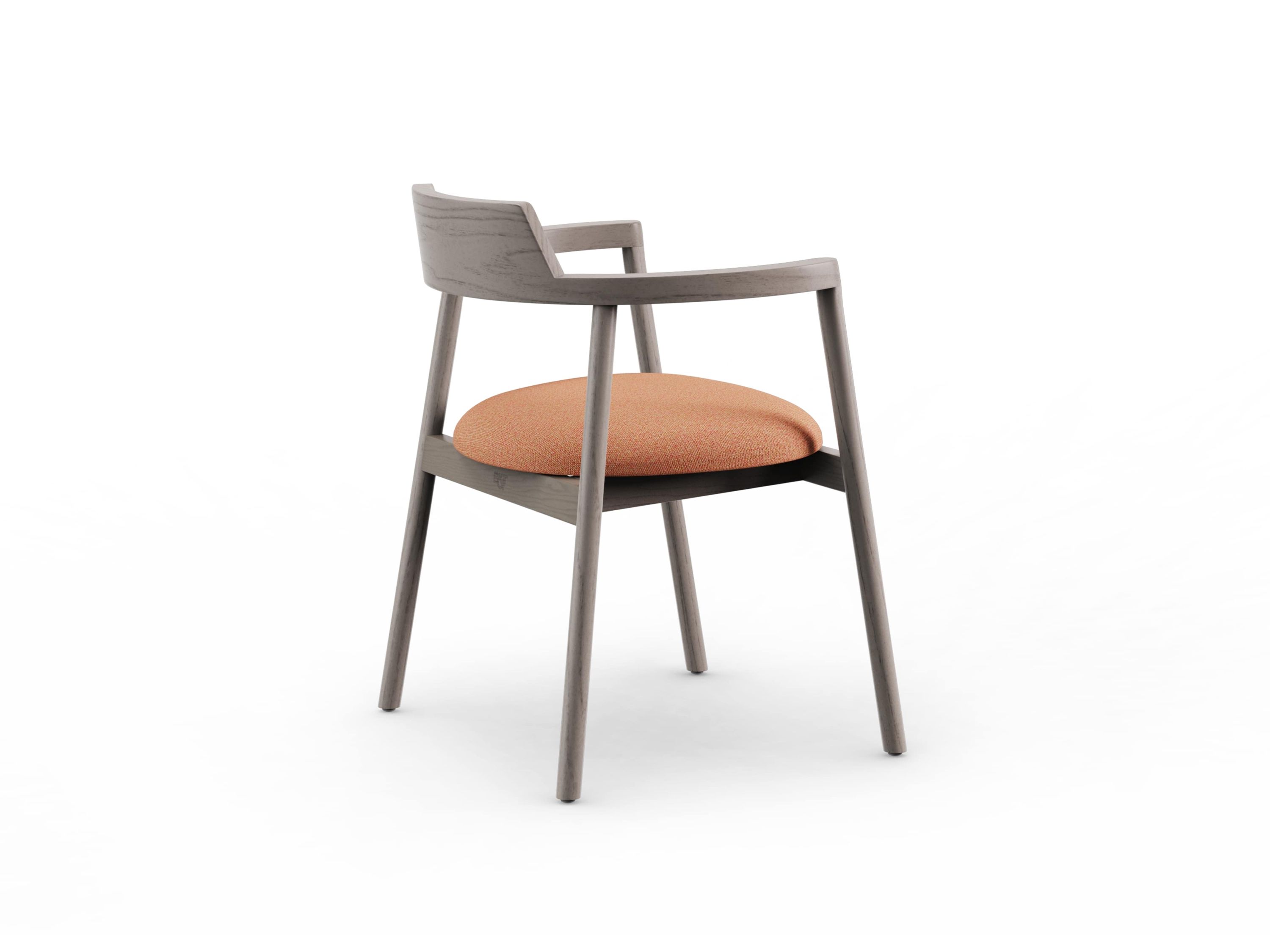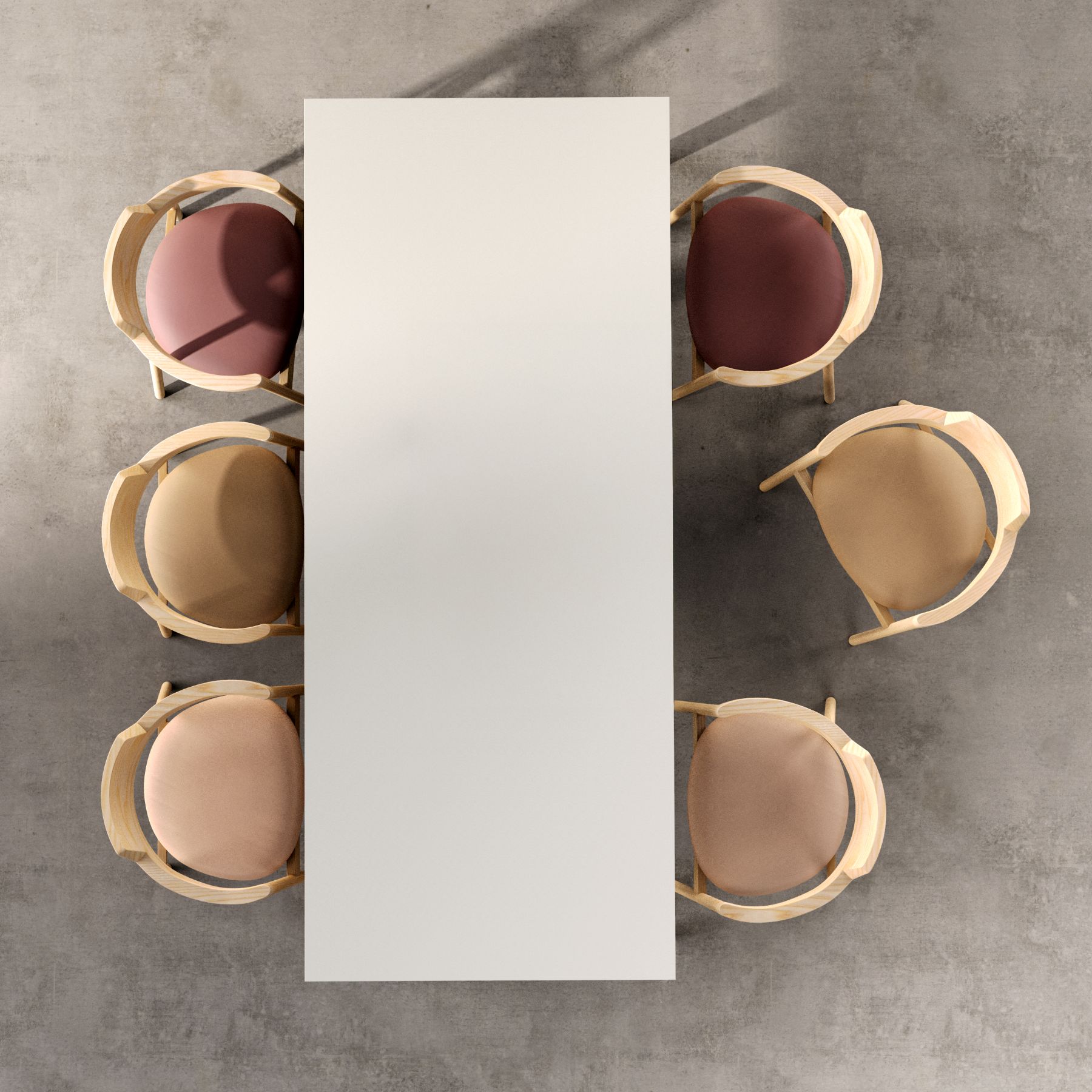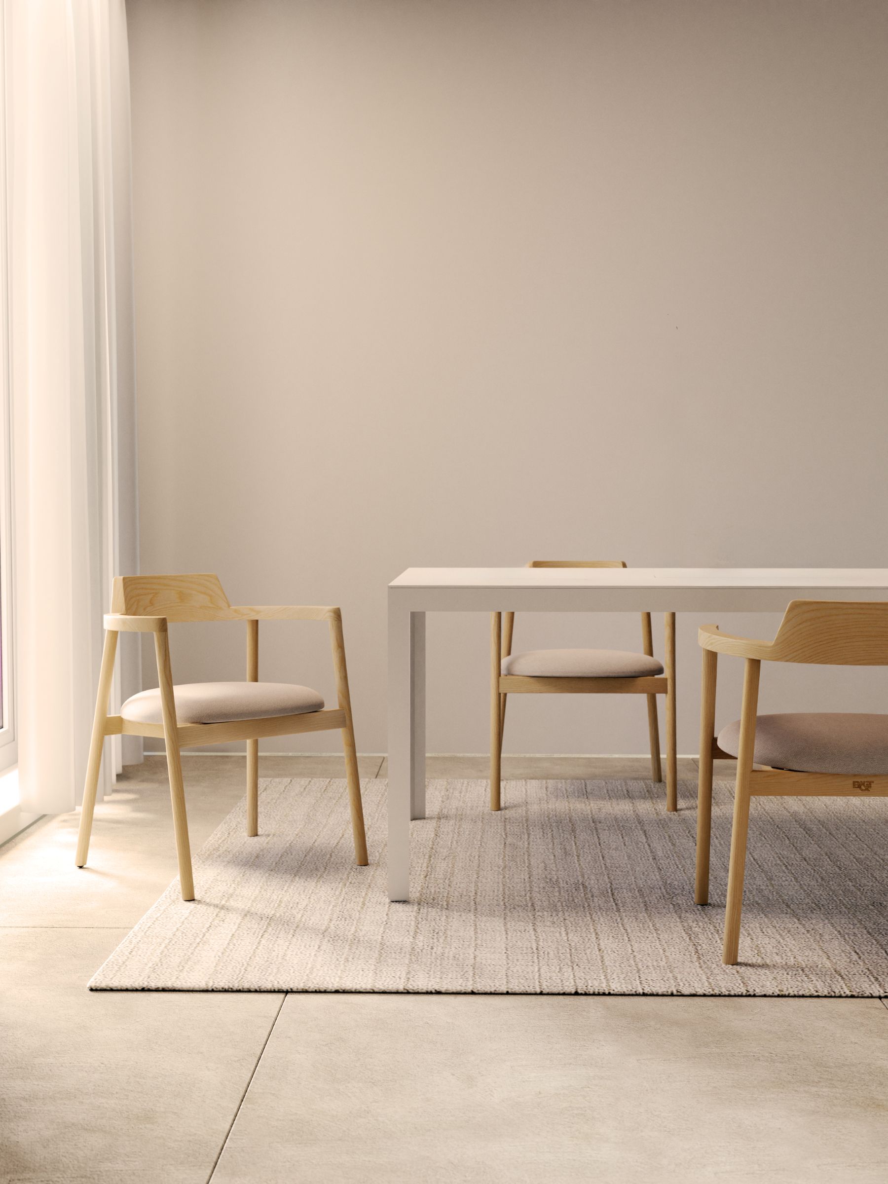 Krzesło Alek, zaprojektowane przez Alp Nuhoğlu dla B&T Design, łączy prostotę, elegancję i naturalne drewno. Oparcie i podłokietniki tworzą jednolitą, ergonomicznie wyprofilowaną formę, a skośne cylindryczne nogi dodają lekkości i nowoczesnego charakteru. Siedzisko wypełniono miękką pianką 70 mm, a szeroki wybór tkanin i wykończeń drewna (jesion, orzech, czerń) pozwala dopasować krzesło do każdego wnętrza.