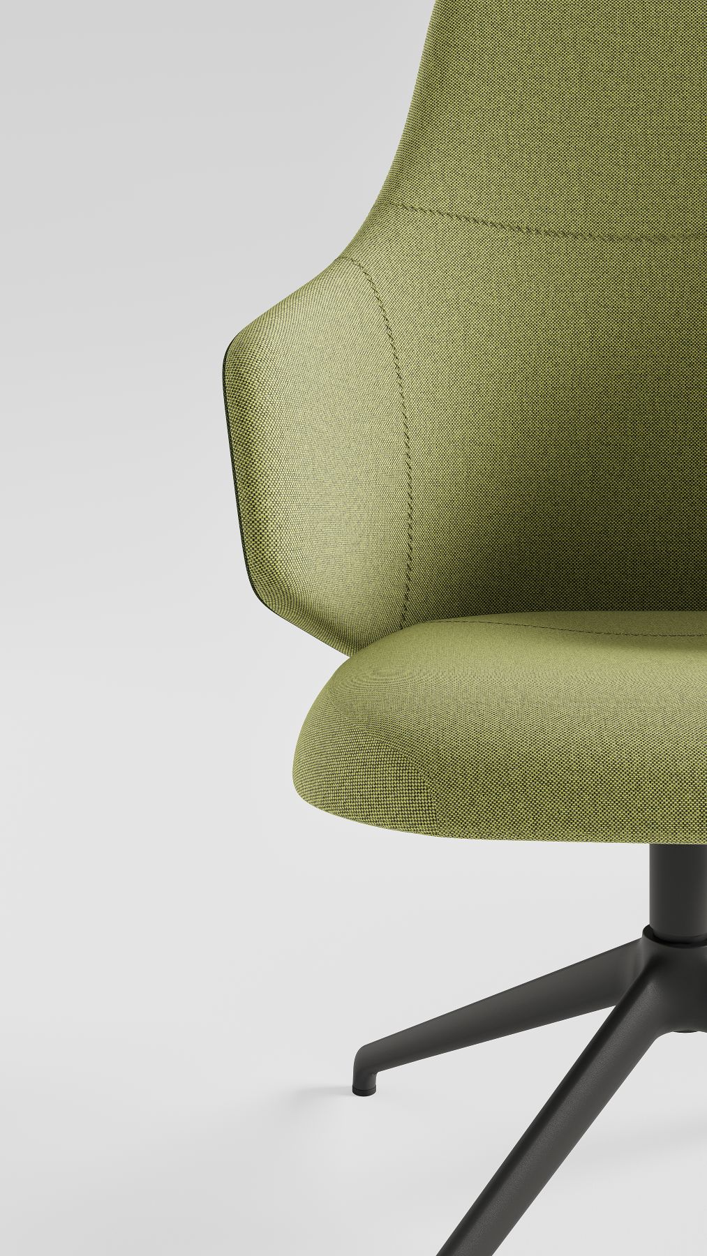 - Obszerne, miękko wyściełane siedzisko redukuje zmęczenie podczas dłuższych spotkań.