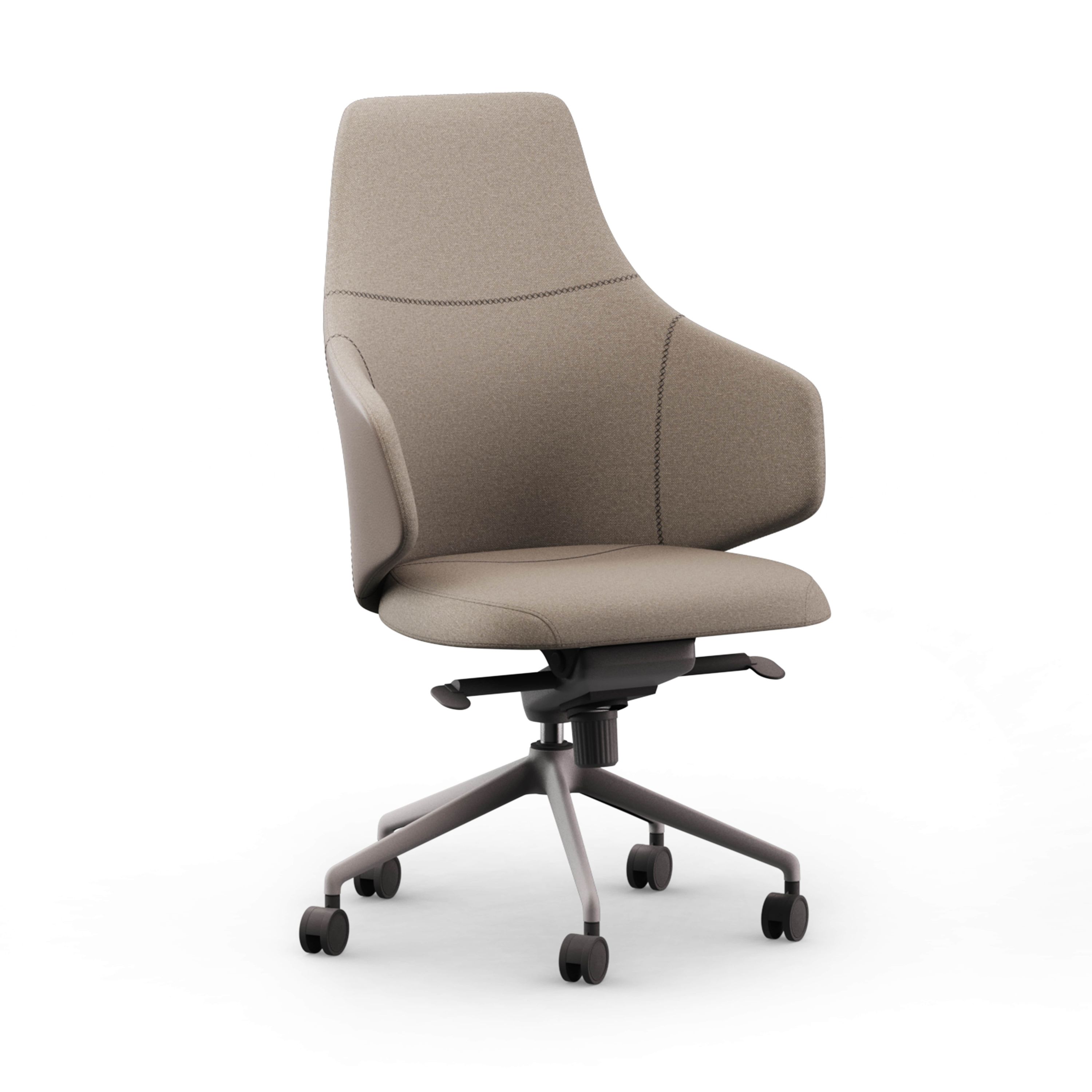 Mentor Premium SYN od B&T Design to obrotowy fotel na kółkach, który łączy rzeźbiarski design z wysoką funkcjonalnością. Wyjątkowe tapicerowanie, starannie wykonane przeszycia oraz solidna, aluminiowa podstawa podkreślają jego ekskluzywny charakter, a mobilność zapewniana przez kółka zwiększa wygodę i swobodę ruchu w przestrzeniach biznesowych.