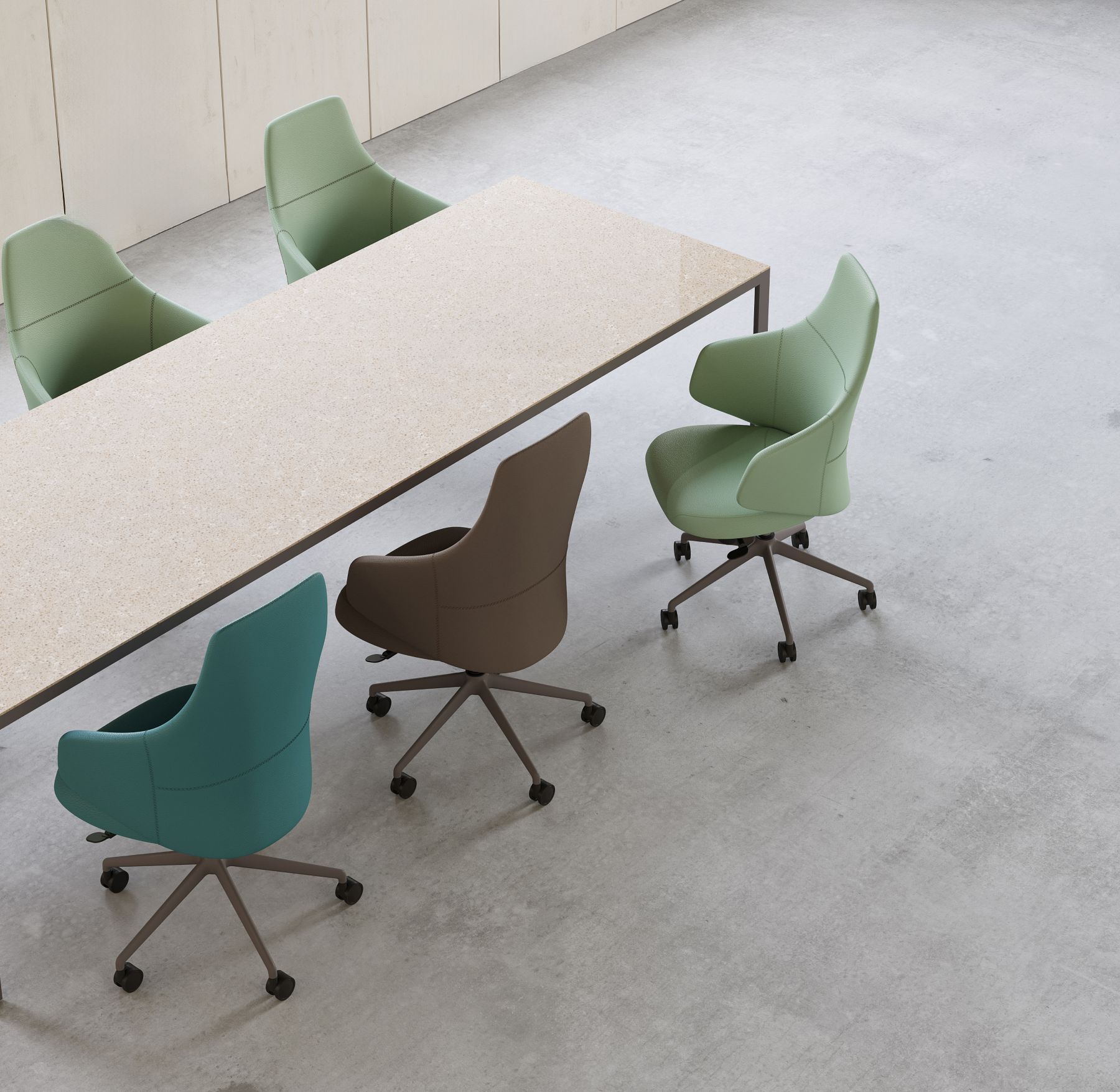 Obszernie i miękko wyściełane siedzisko zmniejsza zmęczenie podczas długich spotkań.